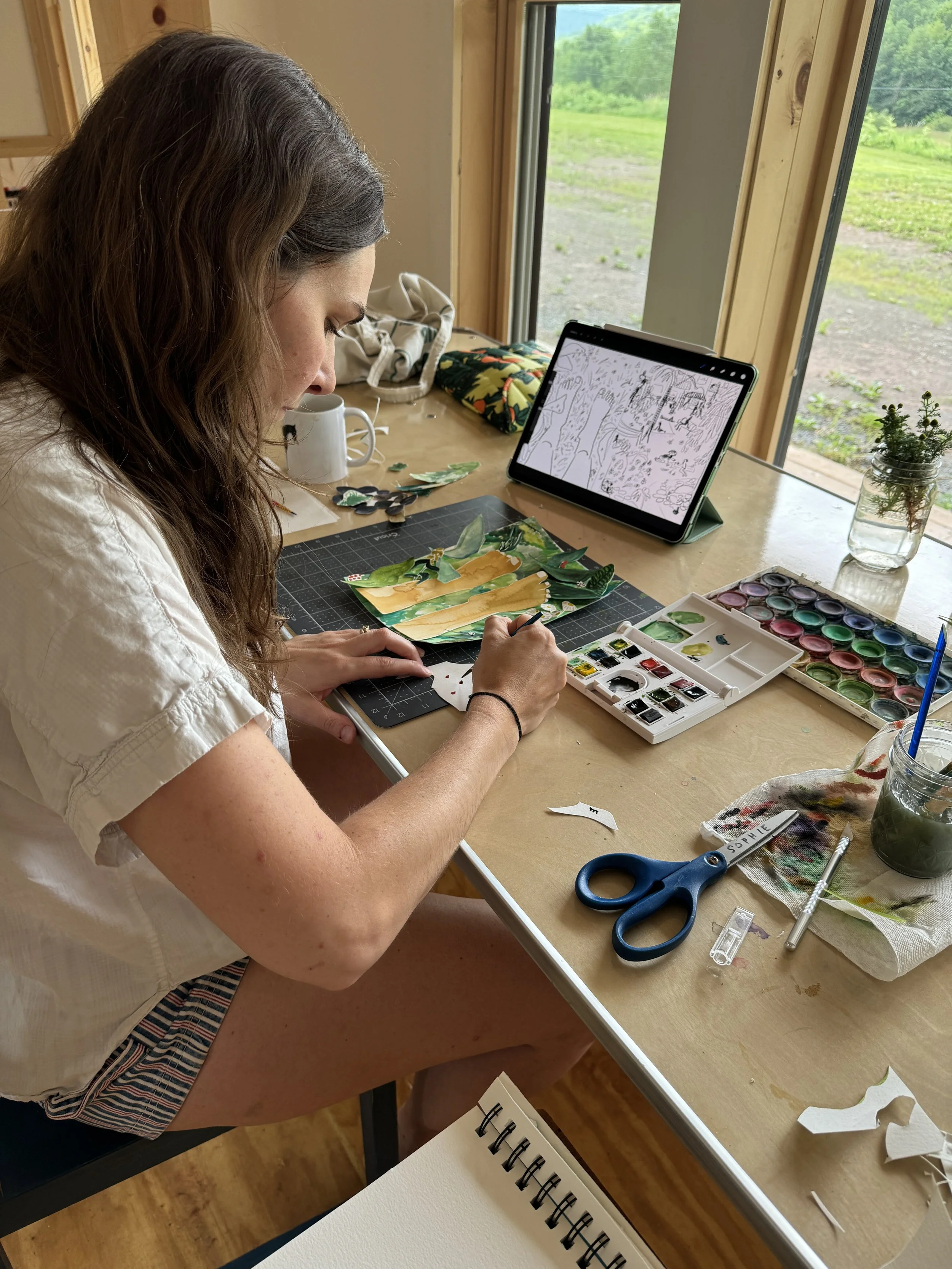 This was my first residency and I had no plan. I packed watercolors, my iPad (on which I had been illustrating my children’s books thus far), paper, and met my ride in NYC to head upstate. I was in slight shock when I unpacked and was left to my own schedule. What would I do? Illustrate my stories? Sleep in? Drink my coffee hot? I gave myself no goals, no restrictions on my time. My only rule was to listen to my body. To really ask myself, “what do I feel like doing right now?” and follow my gut.