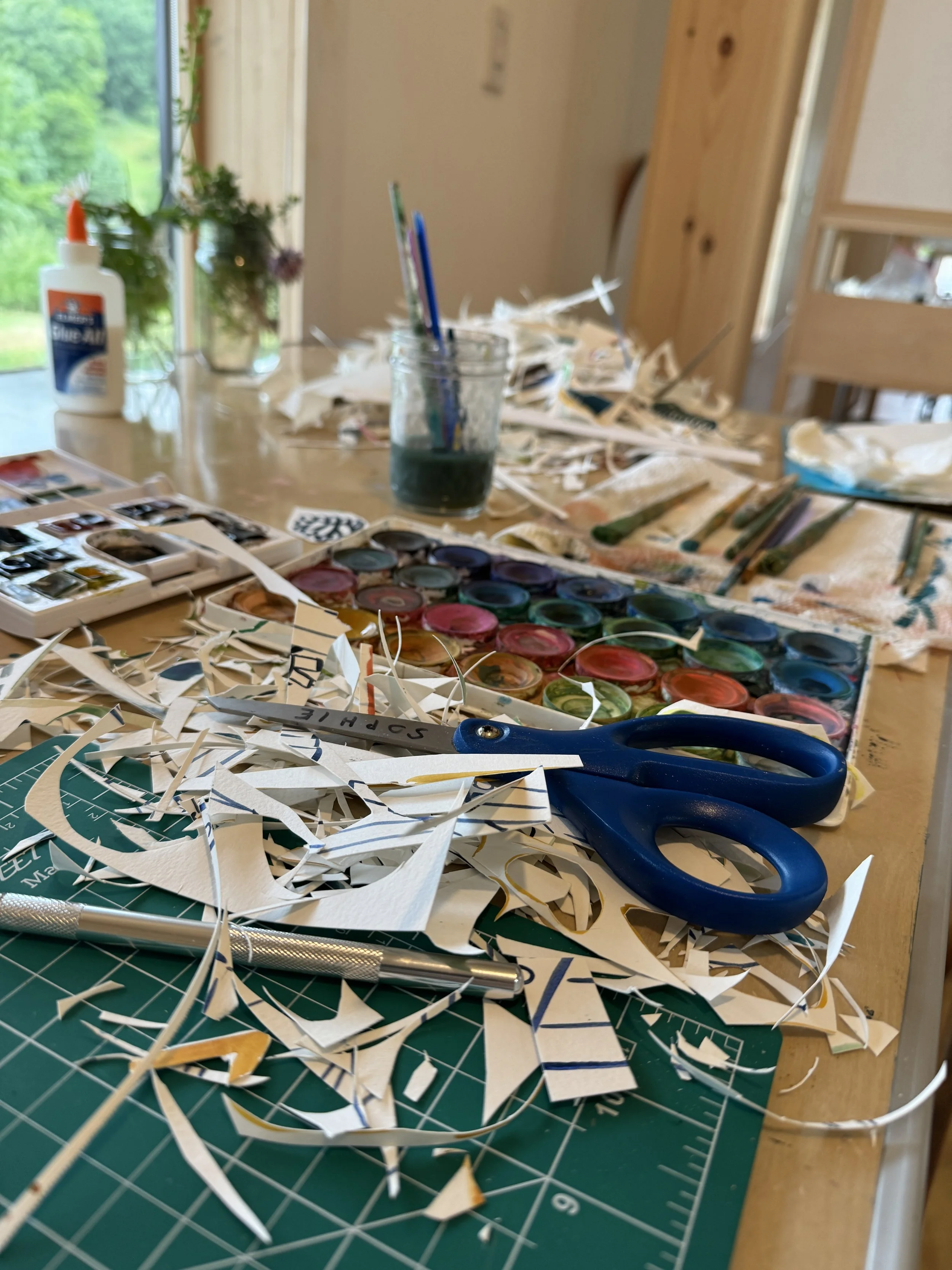 And I trusted her. I trusted all of the artists and writers who were there working along side me, as if we had known each other for years. Their words of encouragement, mind-blowing work, and willingness to lend supplies (thank you Alison!) allowed me to dive in and not worry. I just focused on making things that I liked. One small cutout piece at a time.